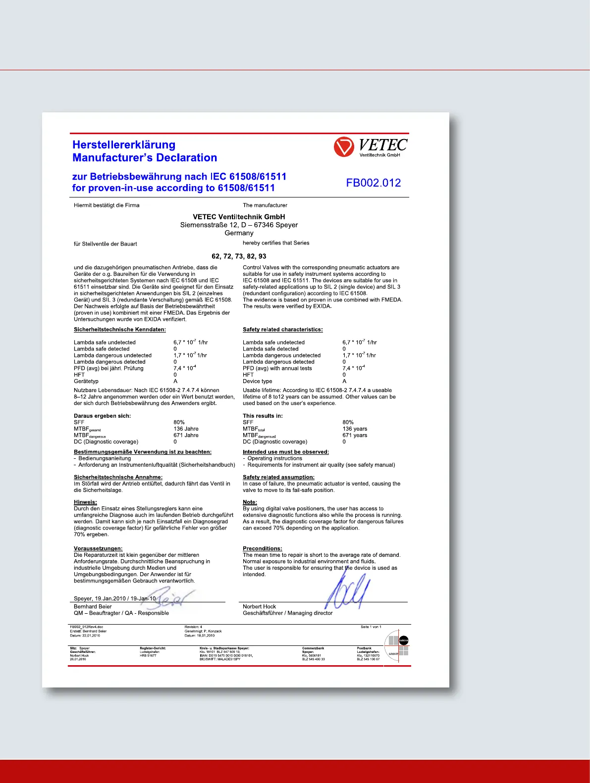 Functional safety of globe valves, rotary plug valves, ball valves and butterfly valves