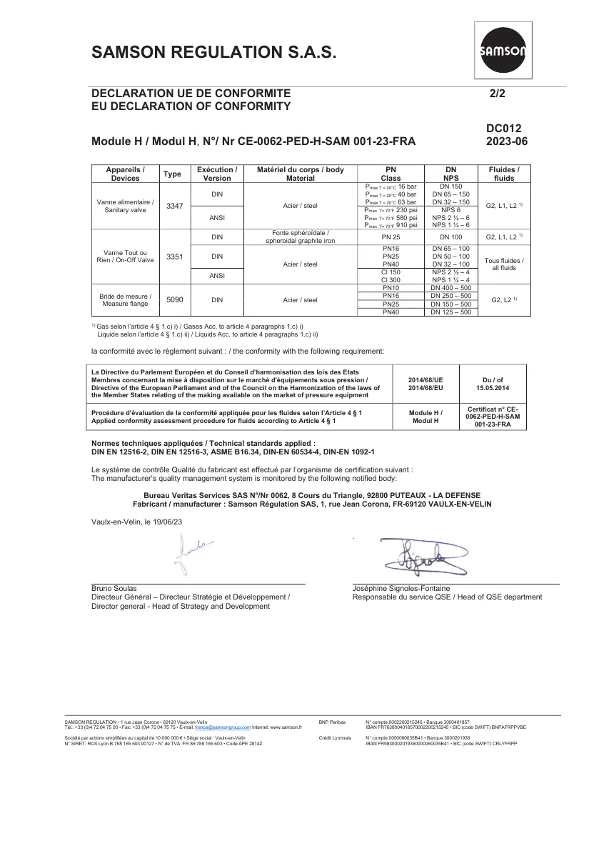 Module H / Modul H, N°/ Nr CE-0062-PED-H-SAM 001-23-FRA 2023-06