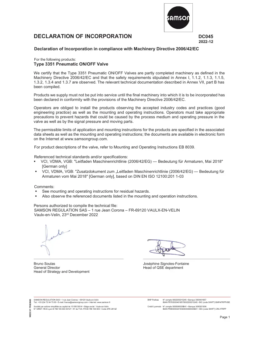 SAMSON REGULATION SAS – 1 rue Jean Corona – FR-69120 VAULX-EN-VELIN