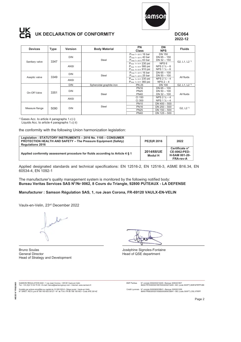 Manufacturer : Samson Régulation SAS, 1, rue Jean Corona, FR-69120 VAULX-EN-VELIN