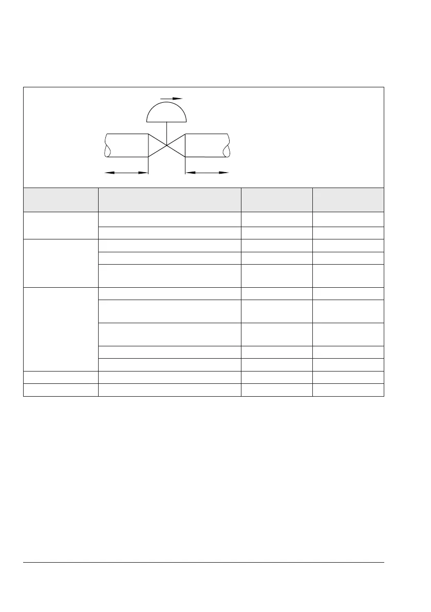 Valve conditions Inlet length a Outlet length b