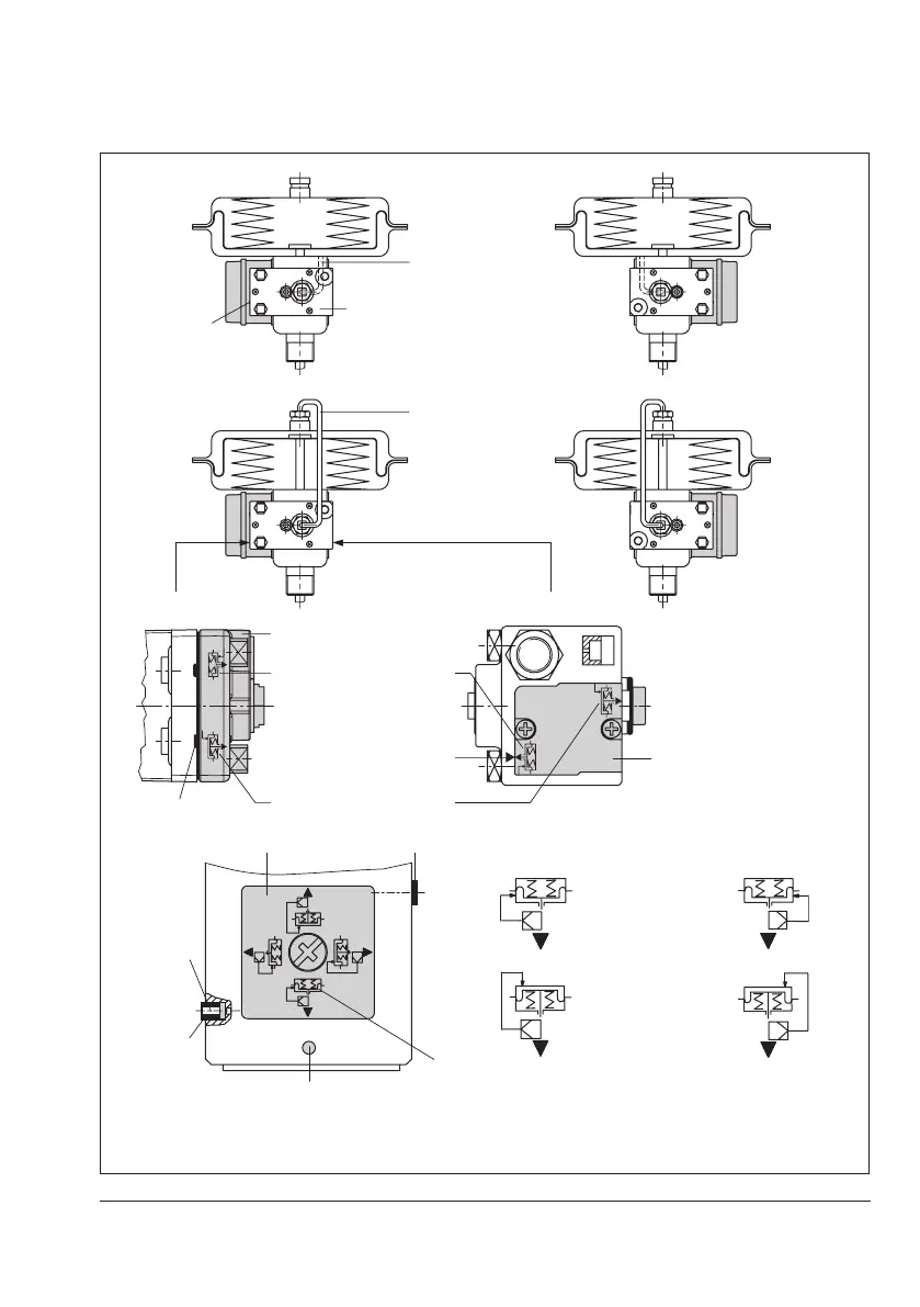 Fig.2: Mounting position and connection of signal pressure for Type3277 Actuator (top) and Type3277-