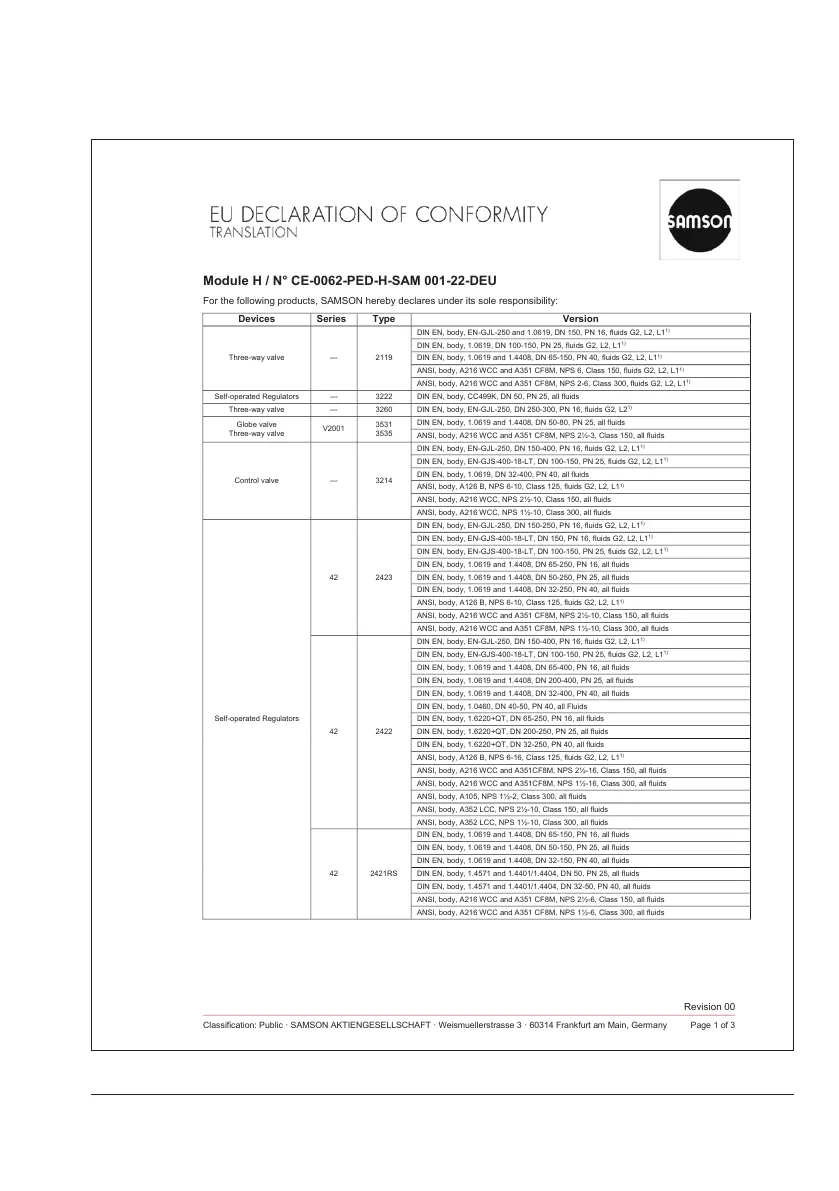 Classification: Public · SAMSON AKTIENGESELLSCHAFT · Weismuellerstrasse 3 · 60314 Frankfurt am Main, Germany