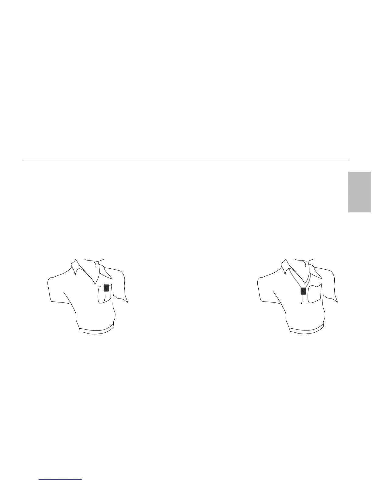 unobstructed by clothing and either clipped to a shirt pocket or lapel, or worn around the neck on the supplied lanyard.