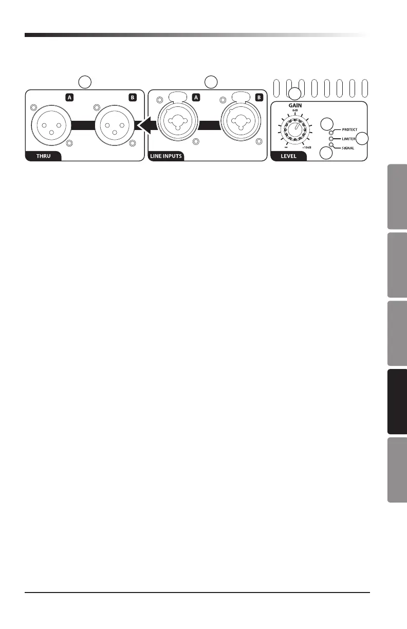 2. Salidas THRU (A y B) - Salidas de línea estéreo XLR macho balanceadas elec-