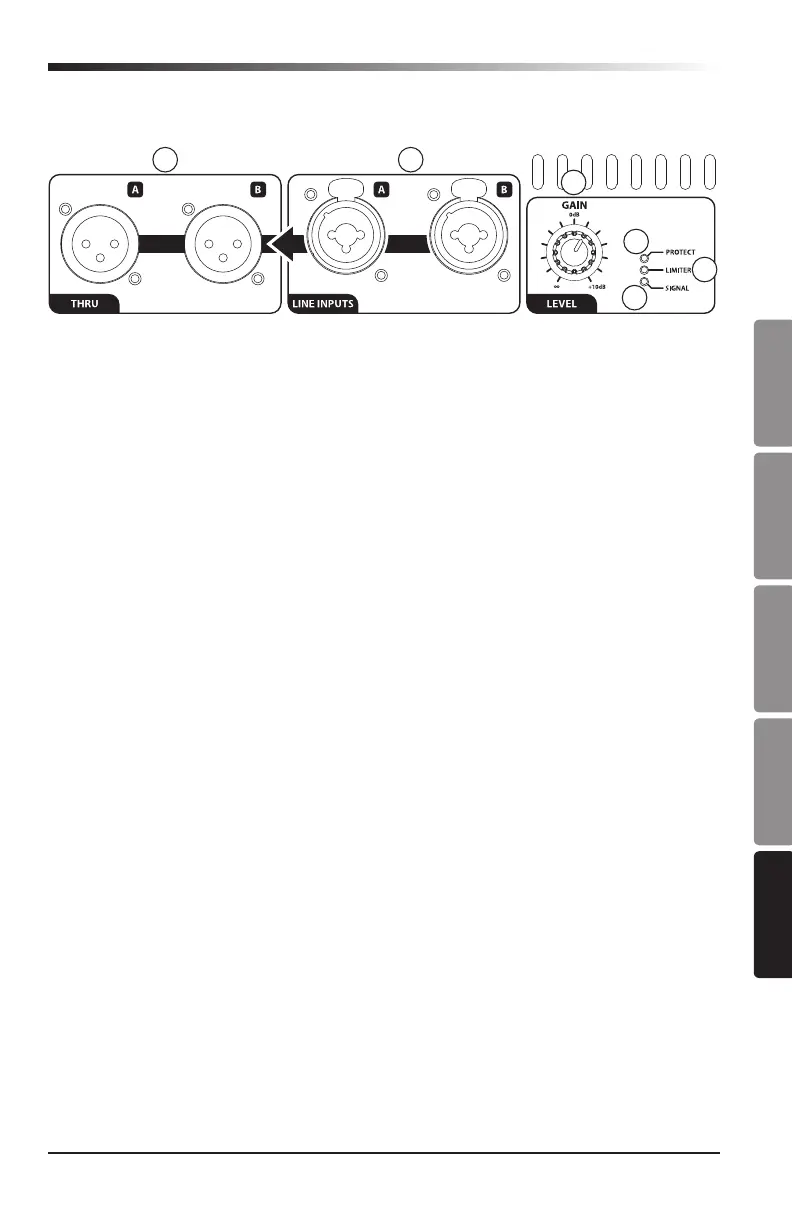 2. Uscite THRU (A e B) - Uscite di linea stereo XLR maschio full range bilanciate