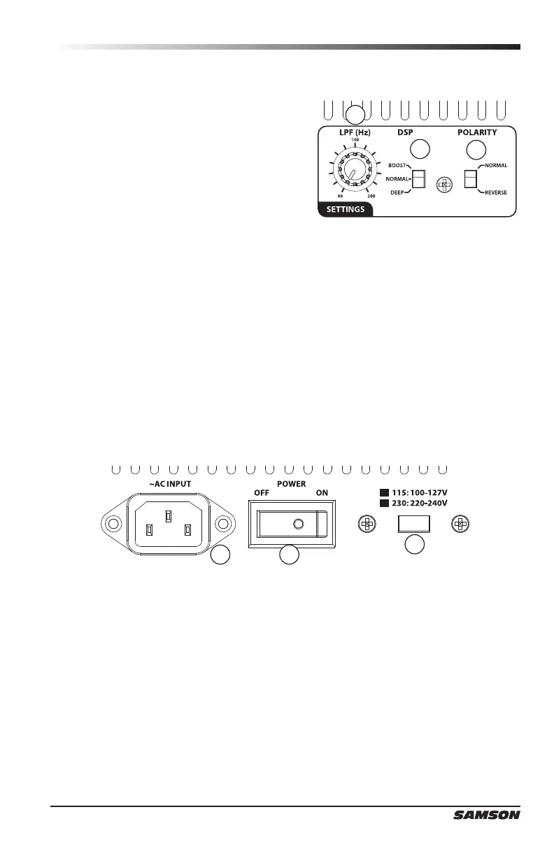 11. Interruttore di ACCENSIONE - Accende l'alimentazione elettrica del subwoofer