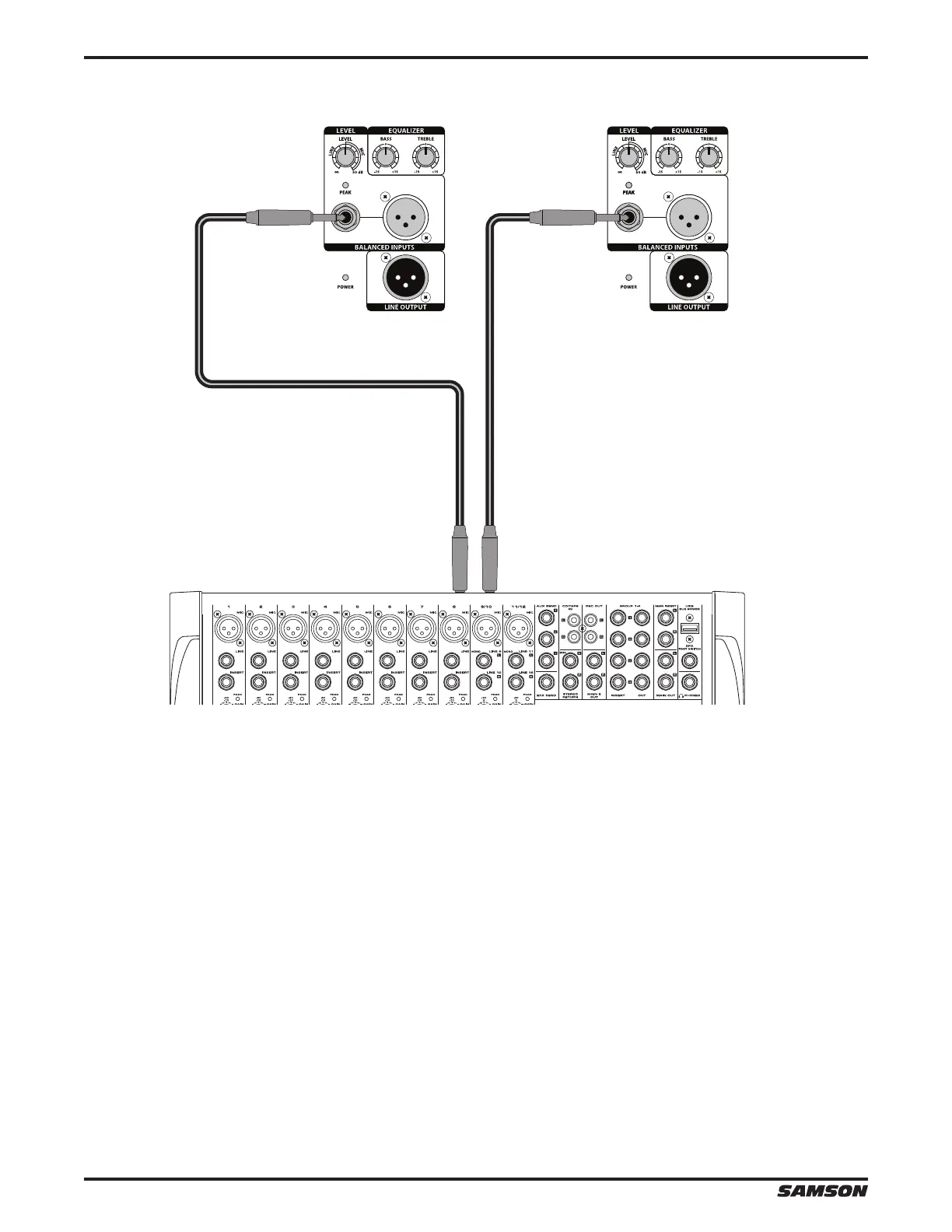 • À l’aide d’un câble XLR ou Jack 6,35 mm standard, connectez les signaux à niveau ligne d’une