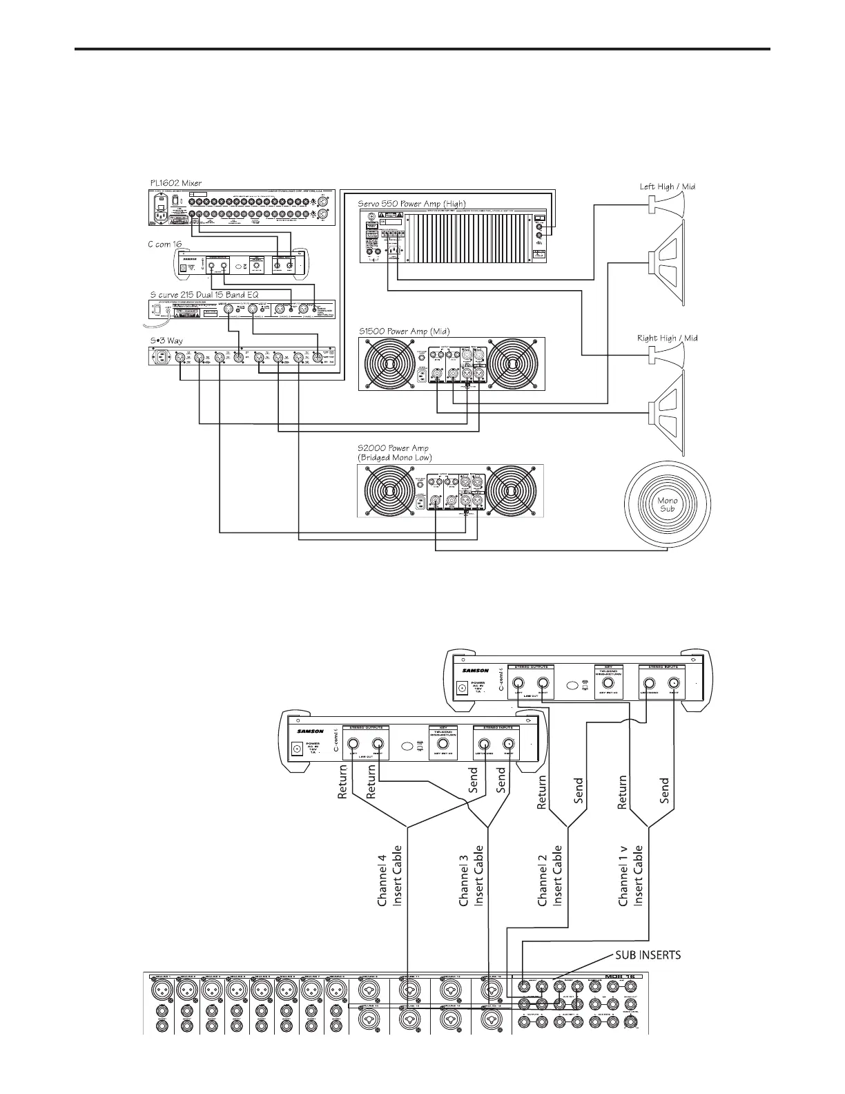 In this example, two C Com 16’s are connected to the the mixer’s insert points on the subgroup outputs.