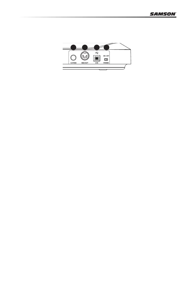 4. SUSTAIN Pedal-Eingang - Hier schließen Sie ein Sustain- oder Expressionpedal