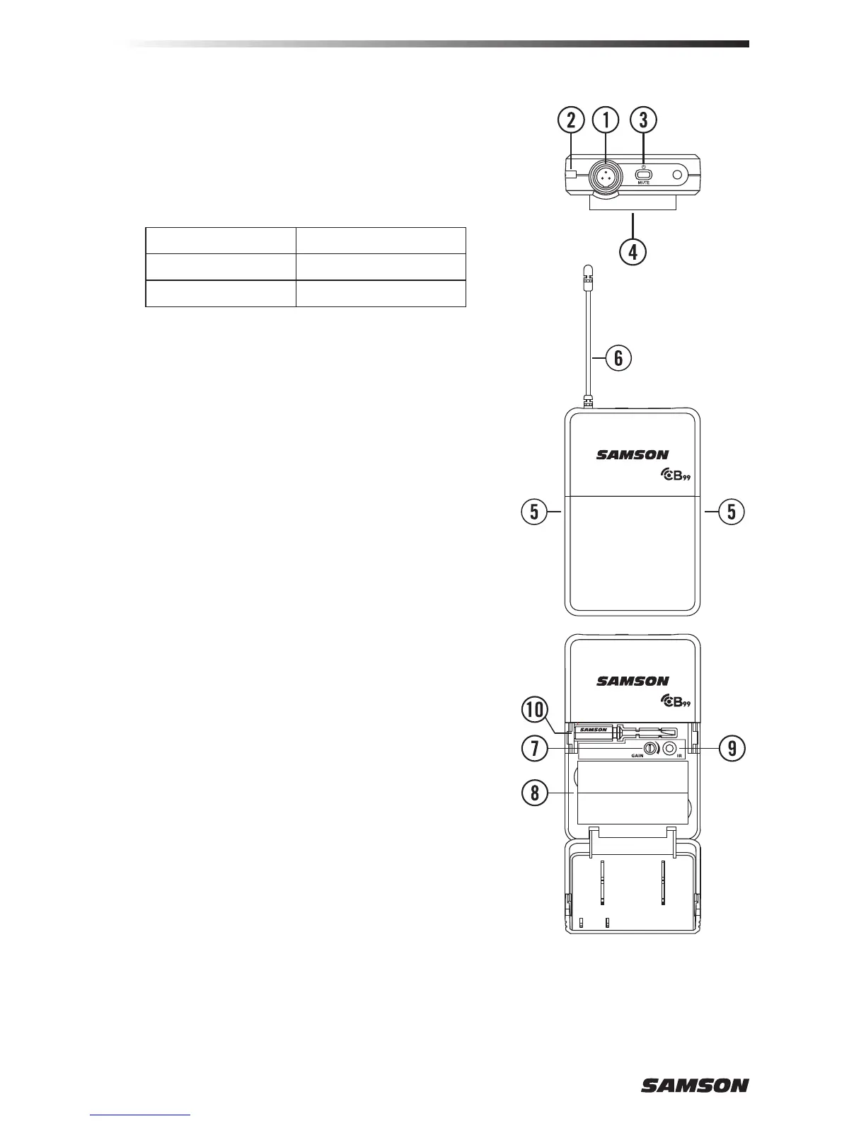 CB99 Belt Pack Transmitter - Callouts