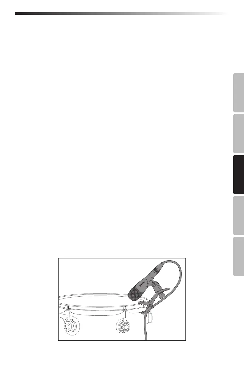 Mitte des Trommelbodens aus. Die Ausrichtung des Mikrofons in Richtung Rand erfasst mehr
