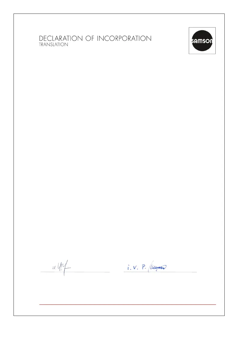 We certify that the Type 2422 Valve is partly completed machinery as defined in the Machinery Directive