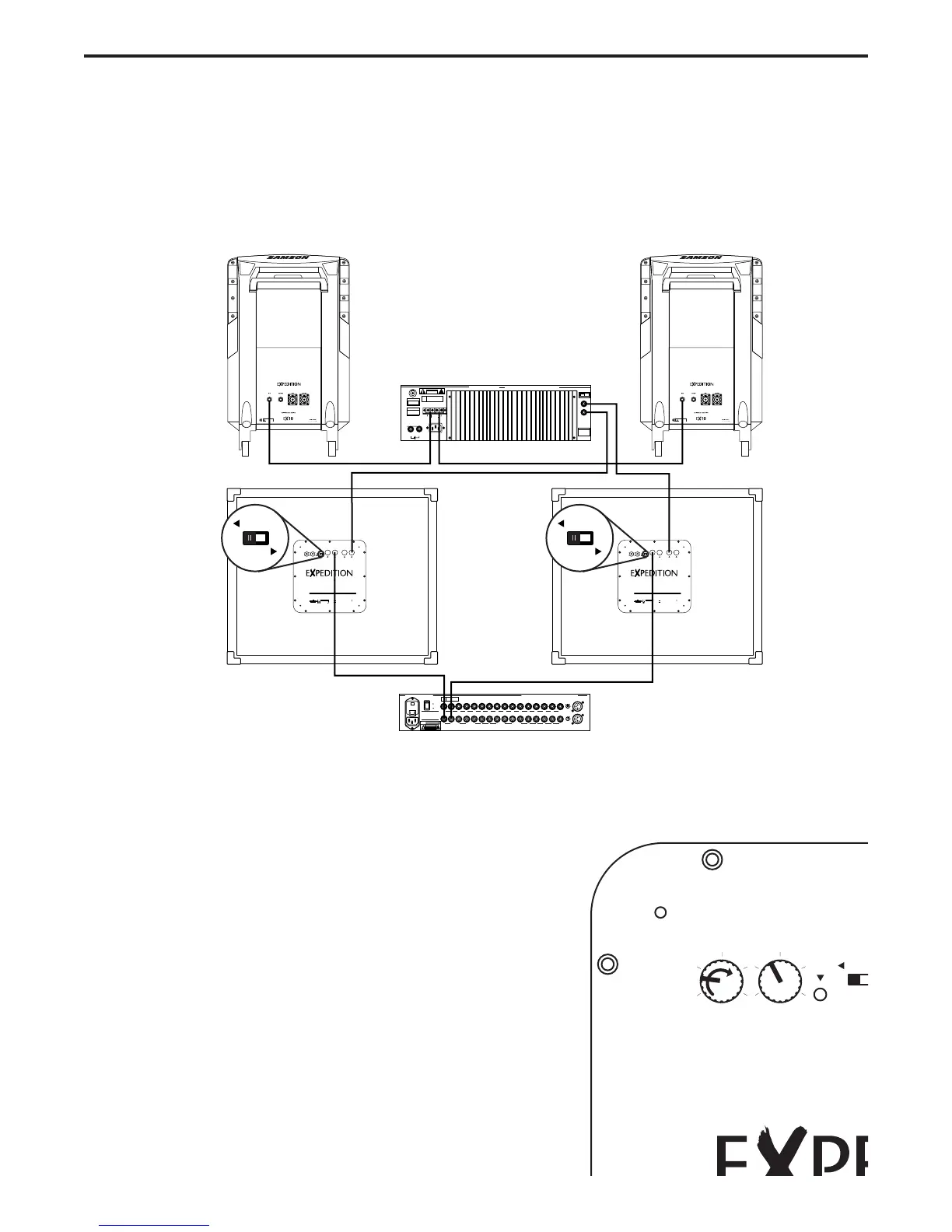 If your system uses a standard stereo power amp and passive full range enclosures, like the Samson EX10, the