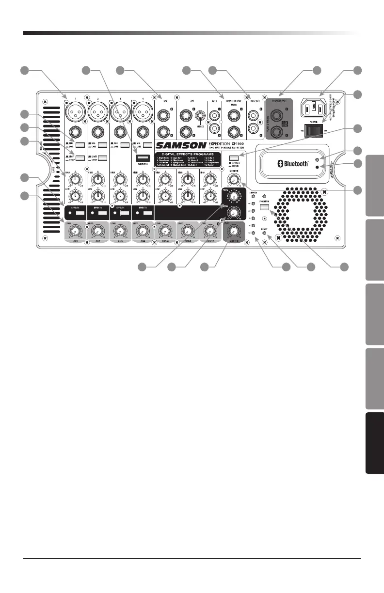 3. Commutatore MIC/LINEA (canali 1 - 4) - La posizione MIC modifica il guadagno dei