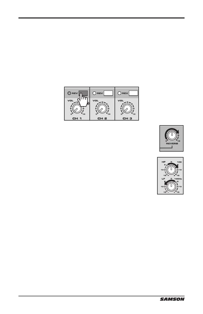 auf die Kanäle 1 - 3 Reverb anwenden. Drücken Sie hierzu die REV-Taste bei den