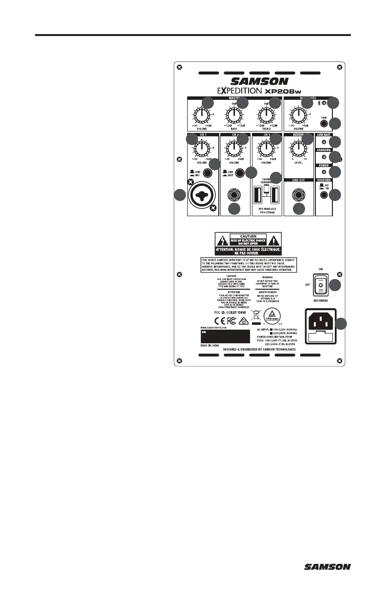 Samson XPD a estas entradas. El receptor inalámbrico recibe su energía del XP208w,