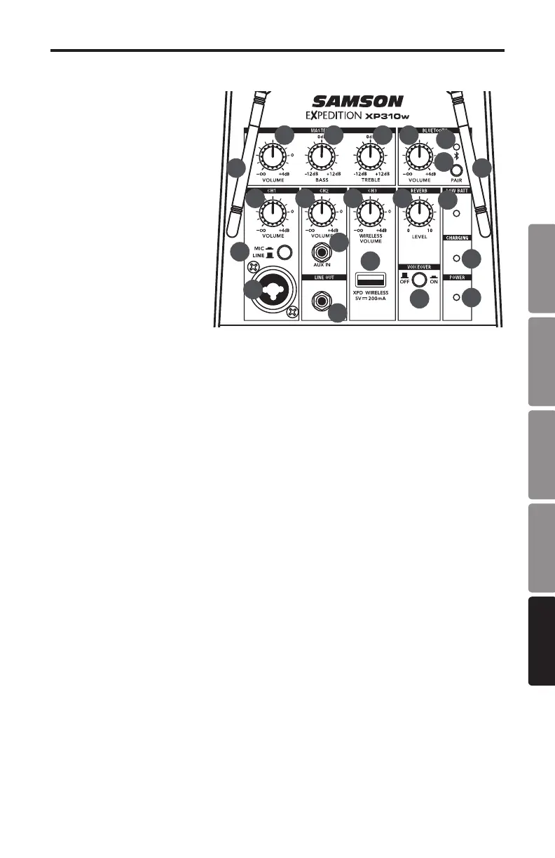 14. Spia di accoppiamento - visualizza lo stato Bluetooth del sistema XP310w.