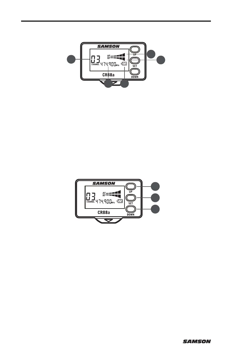 1. Appuyez brièvement sur les touches UP (1) et DOWN (2) pour parcourir les canaux