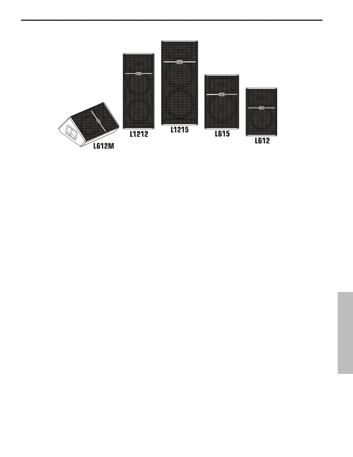 altavoz de 12 pulgadas en el caso del L612 y L612M, dos de 12 para el L1212, un único altavoz de 15