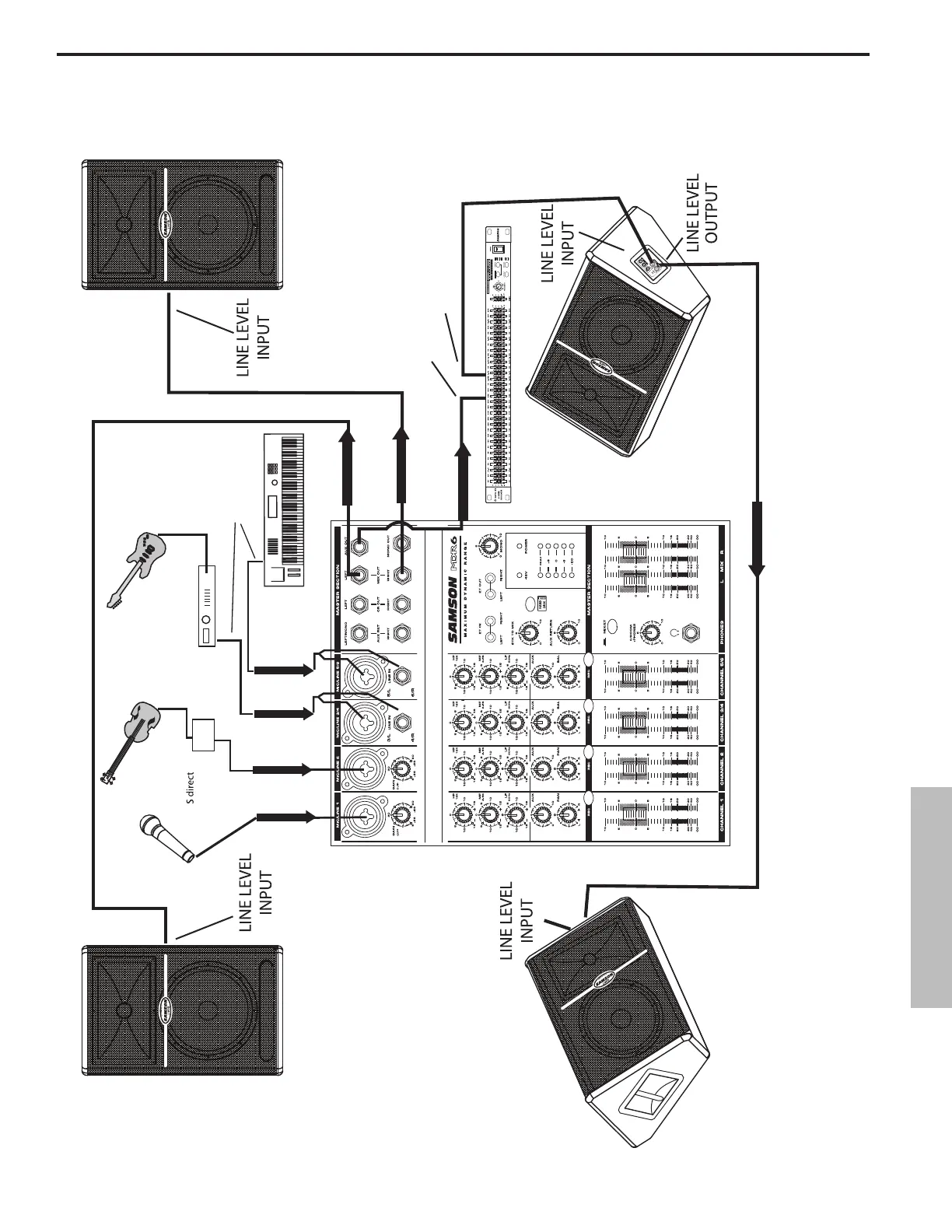 En este ejemplo le mostramos un típico sistema PA con una mesa de mezclas y un par de Live Series para la salida de