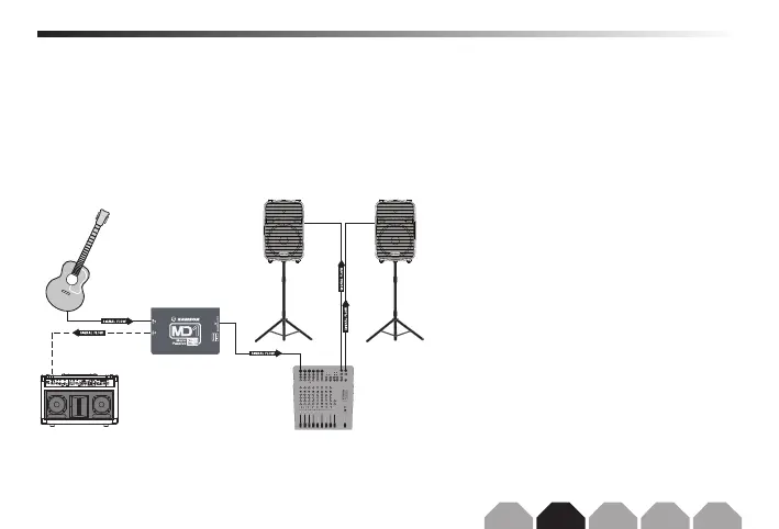 ou des instruments avec micros. En utilisant le MD1, le signal peut être envoyé proprement sur de
