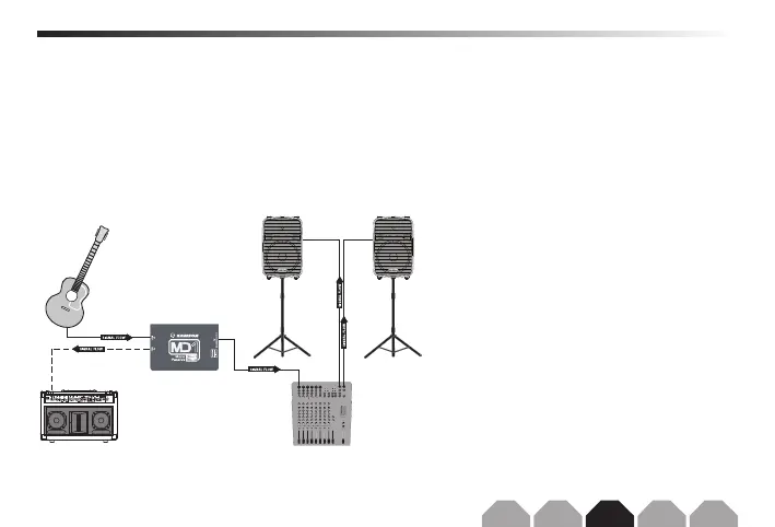 Instrumente mit Abnehmern anzuschließen. Durch Nutzung der MD1Pro kann das Signal sauber über große