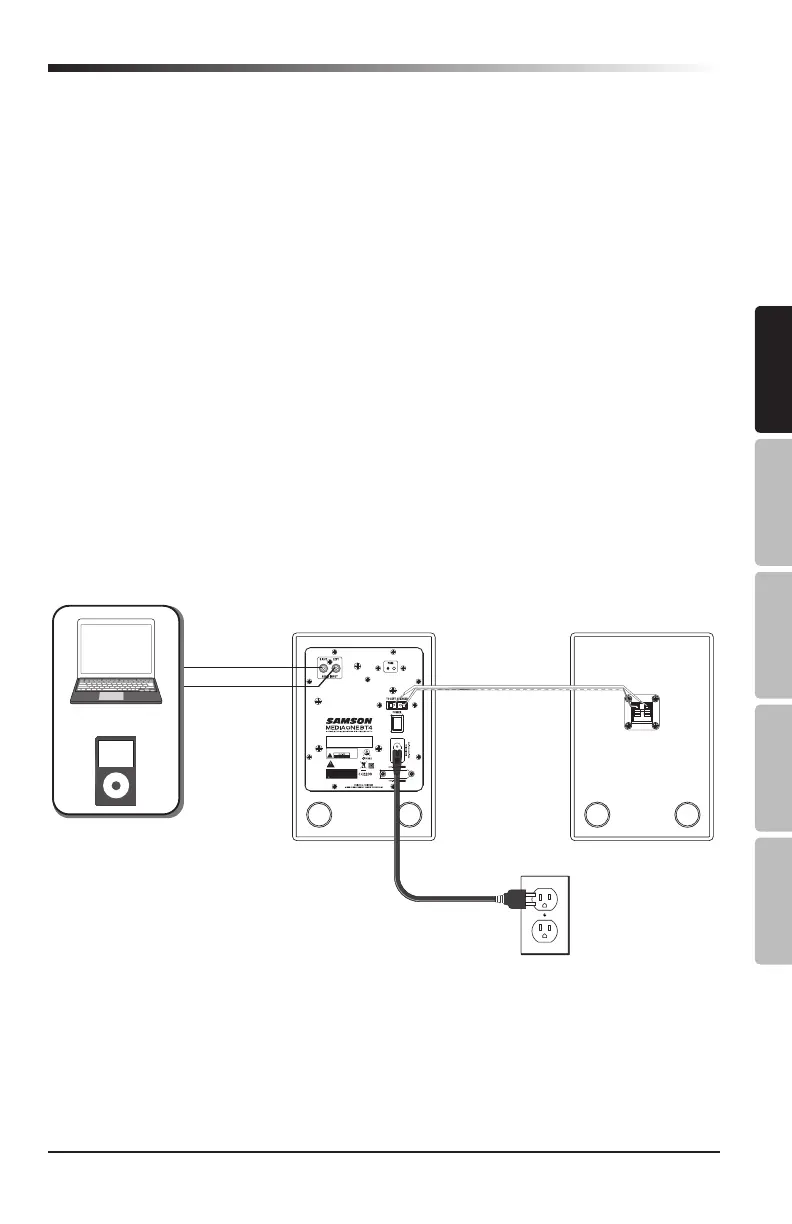 powered speakers. When powering up your system, be sure that all the wires are