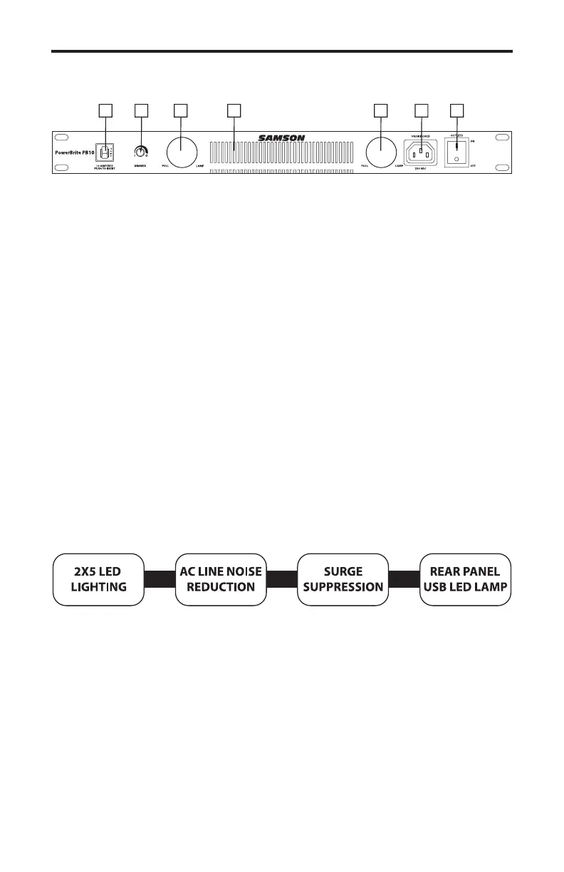 5: Unswitched convenience outlet- This IEC outlet is active whenever the PB10 is