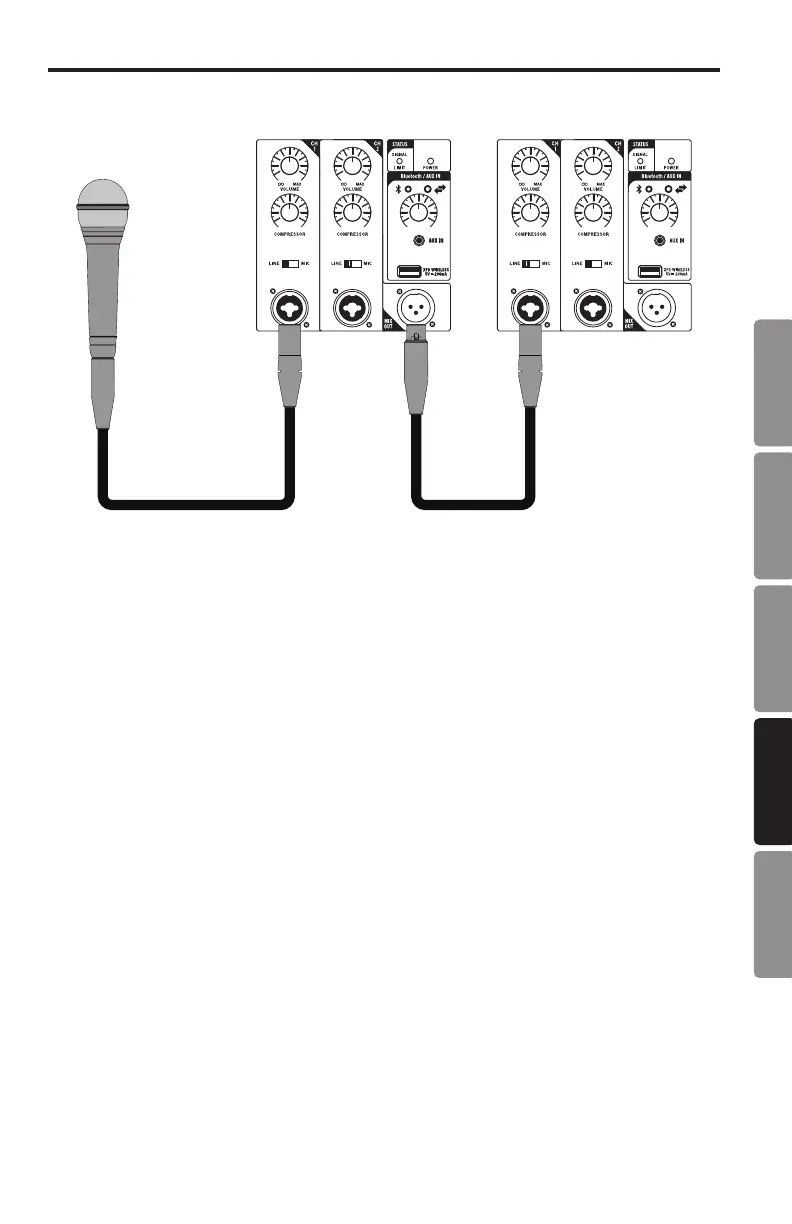 6. Con un cable XLR estándar, conecte un micrófono dinámico en la ENTRADA XLR del