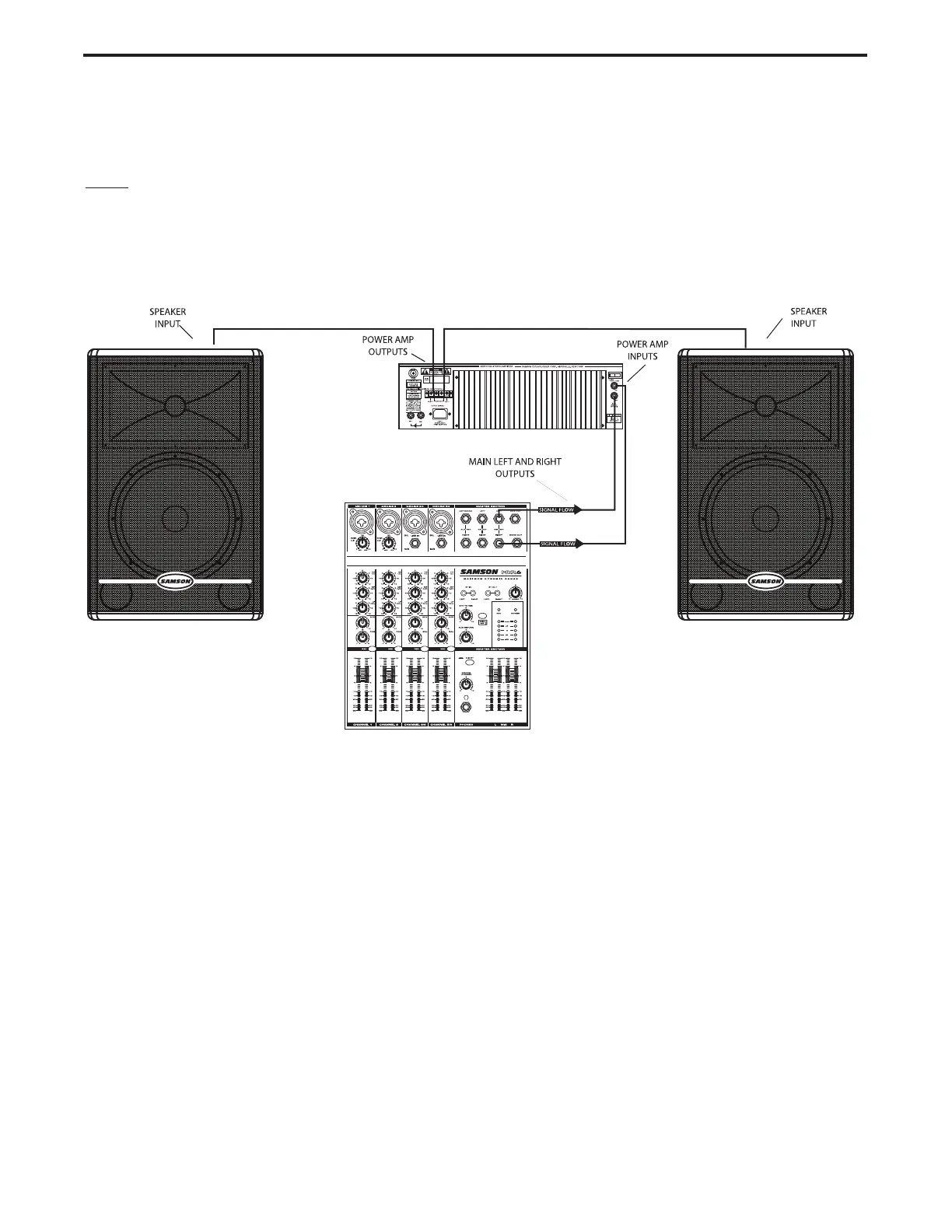 want to get started quickly, you can follow the diagram and steps below to set up a basic stereo PA system.