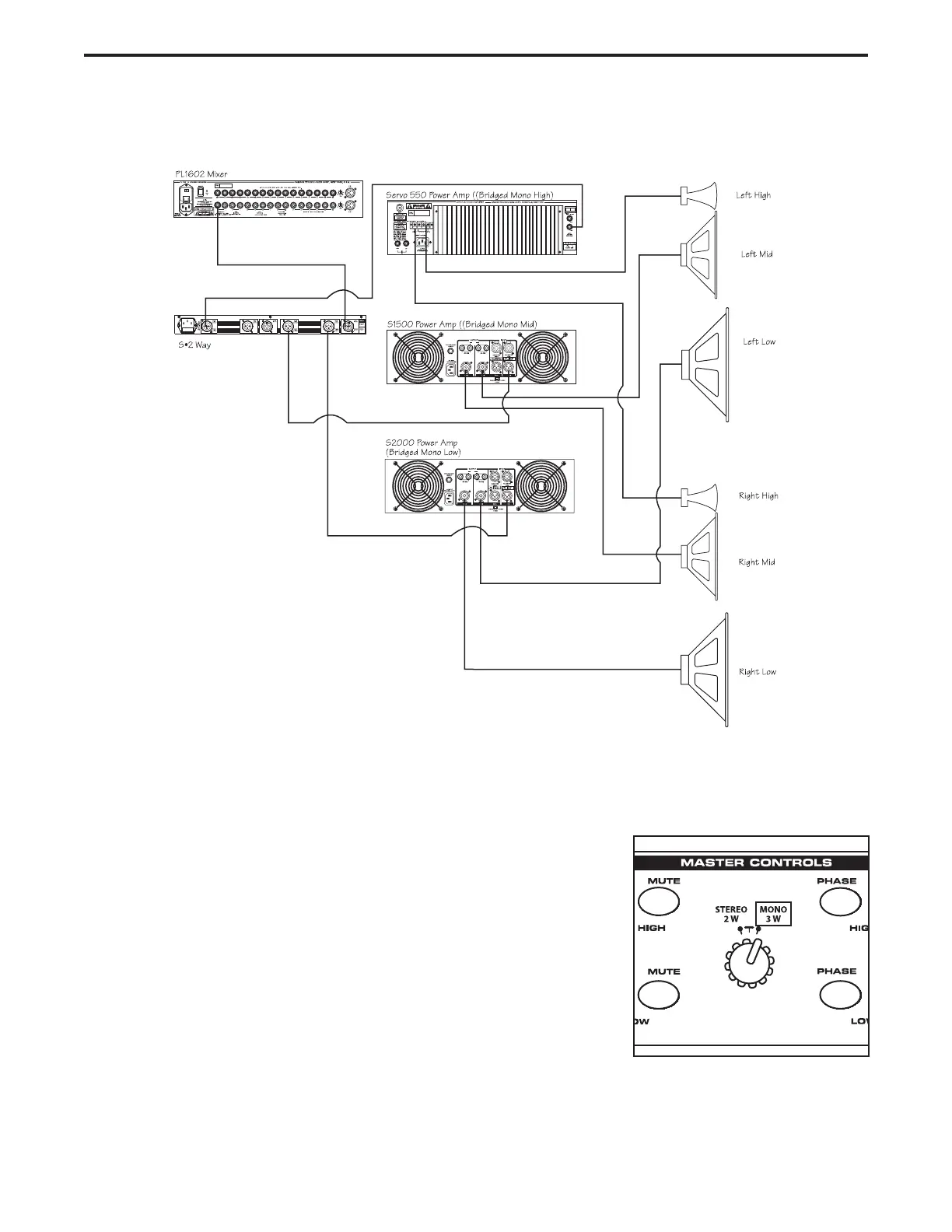 If you’re operating your PA system Mono 3-way, wire your system as shown in the system diagram below.