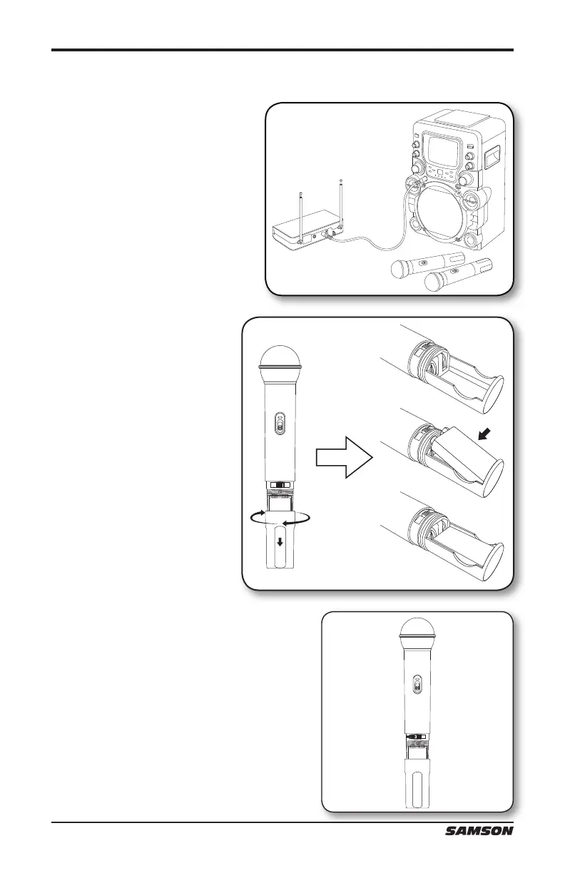 4. Plugging the receiver into a Karaoke machine using 1/4" - 1/4" cable.