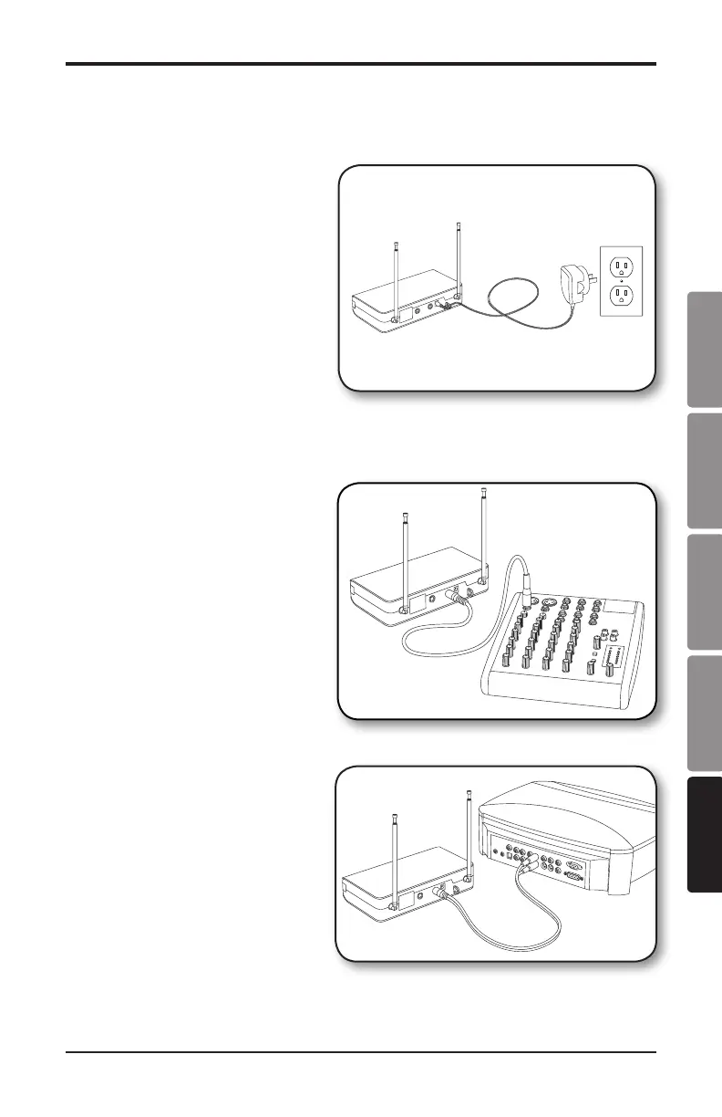 3. Plugging the receiver into a stereo using the 1/4" - RCA cable.