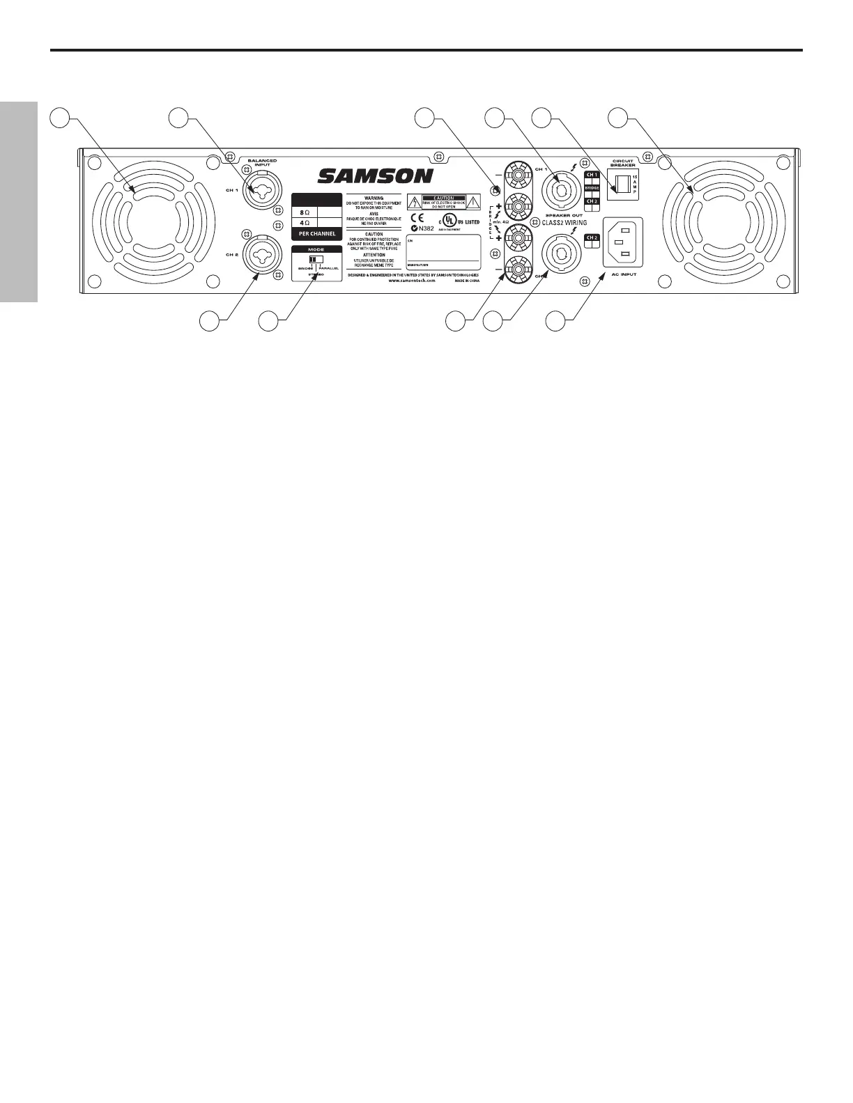 6: Bridge / Stereo / Parallel switch - For normal operation, place this three-way switch in its center (“STEREO”) position. When