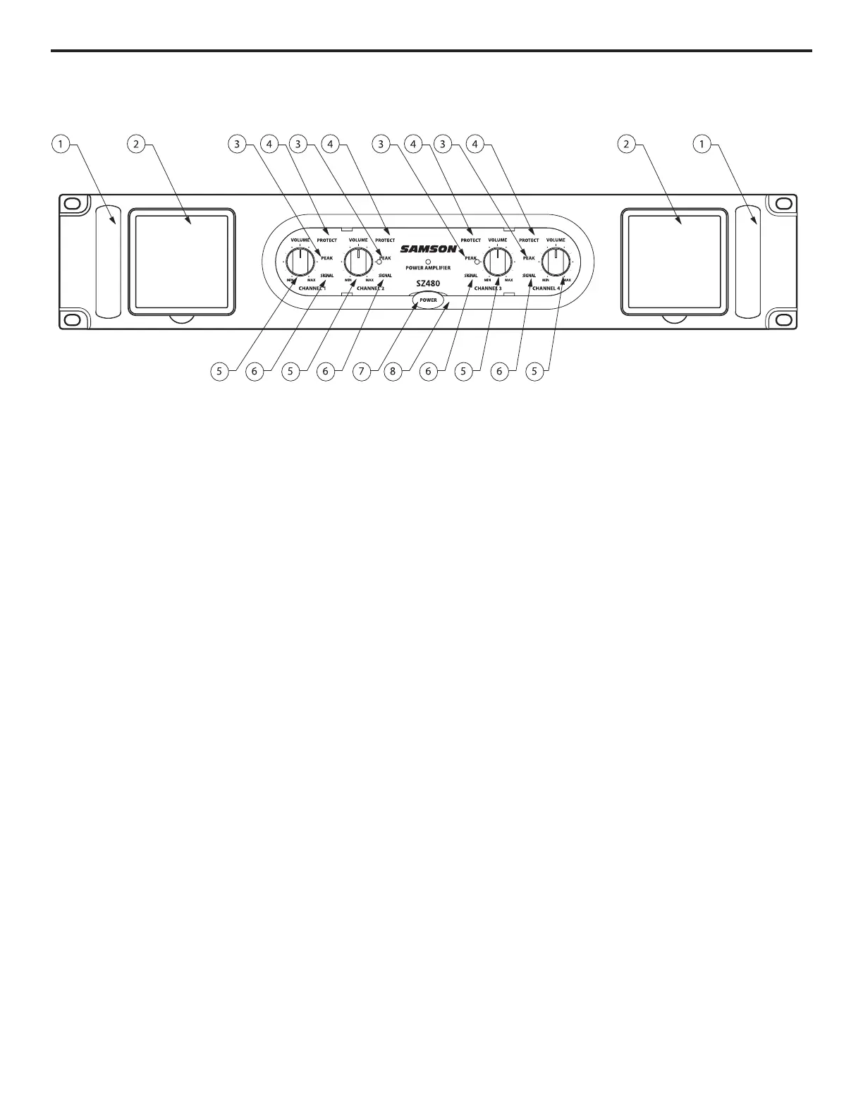 1: Handle - For easy transport while carrying, or while rack mounting, the SZ amplifier features two heavy duty die cast handles