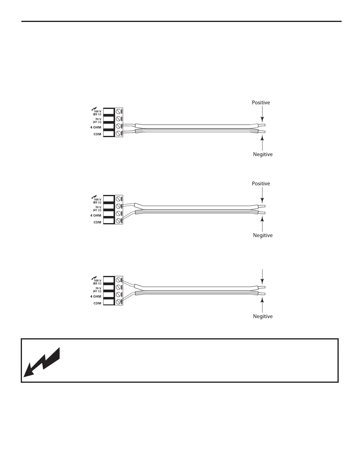 DO NOT HOLD OR TOUCH THE COMMON AND 70 OR 100 VOLT WIRE CONNECTION WHILE