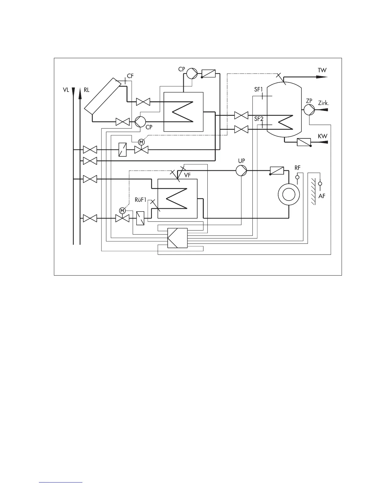 between the storage tank sensor SF2 and solar collector sensor CF. Both solar circuit pumps start