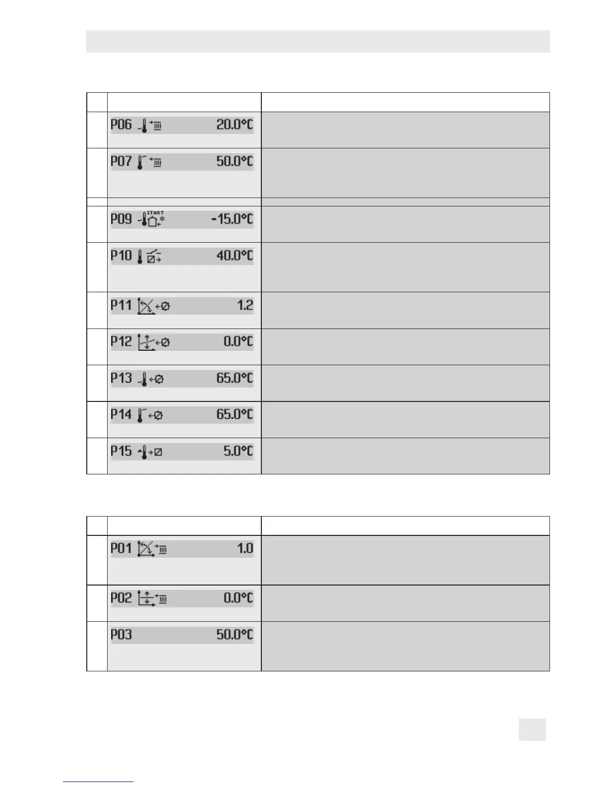 P Display reading Parameter: Value range (default setting)