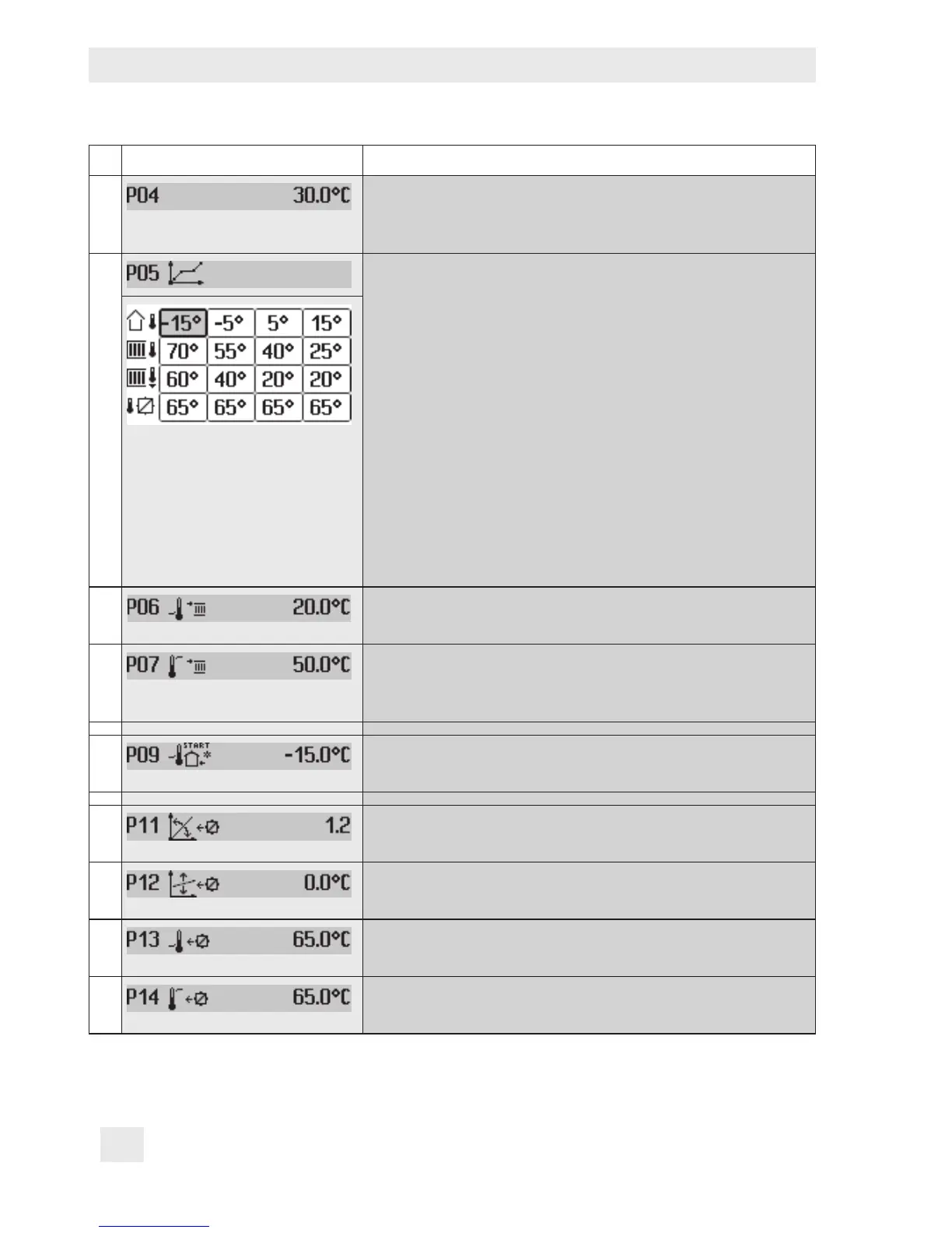 P Display reading Parameter: Value range (default setting)