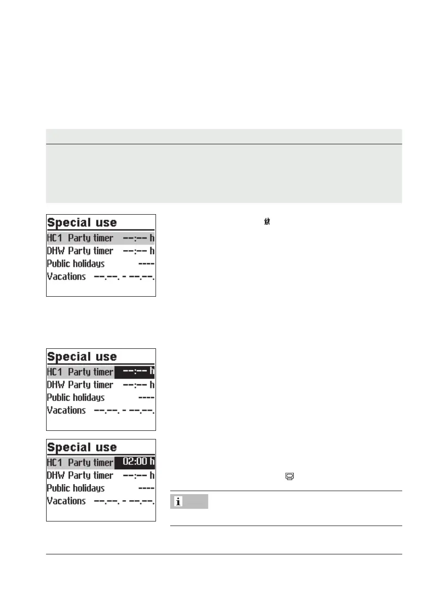 DHW party timer --:-- h 0 to 48h; in steps of 15 minutes