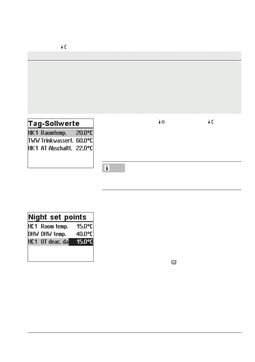 HC3 OT deactivation value 15.0°C –50.0 to 50.0°C