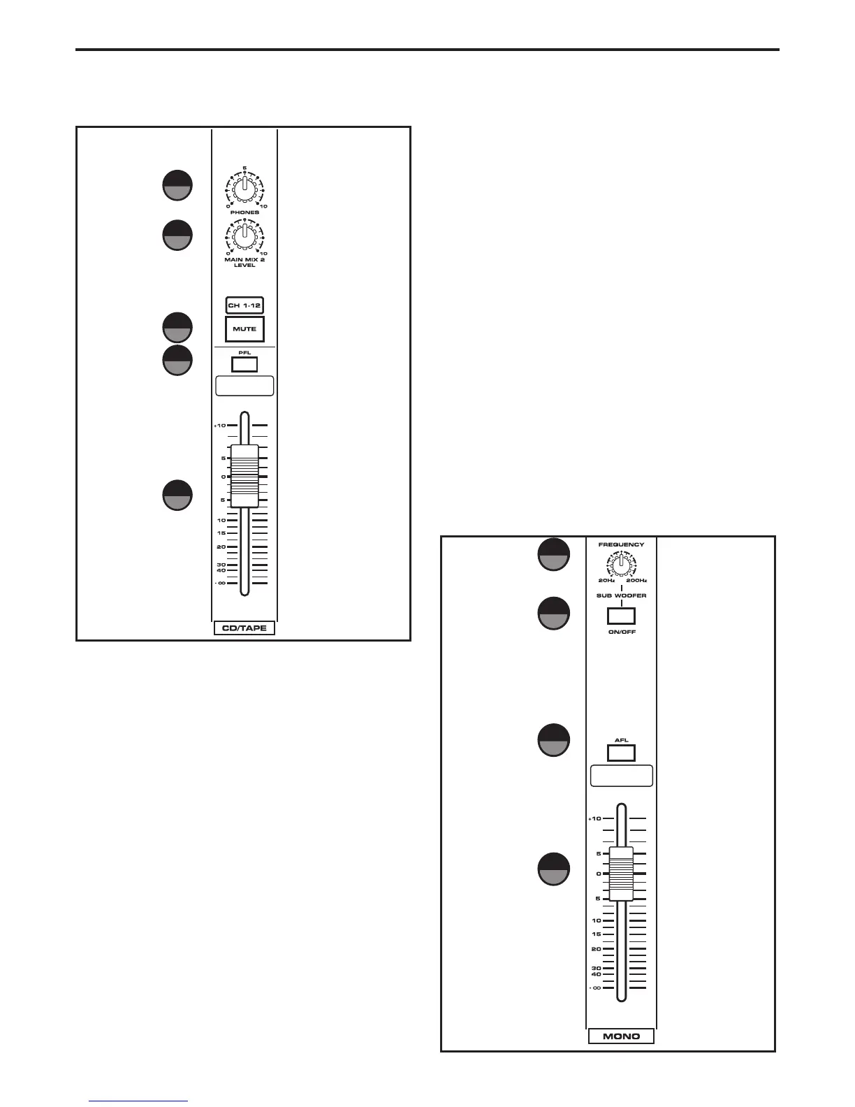 the headphones. When the CD/TAPE input channel’s PFL