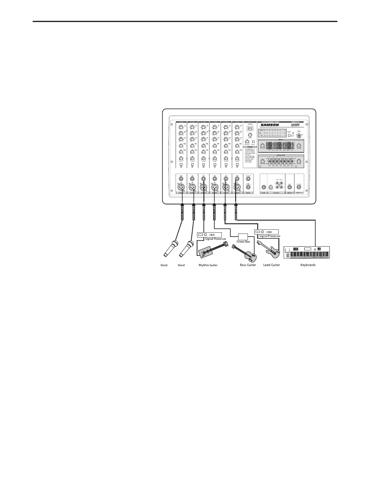 5. While speaking into the mic (or playing the instrument), adjust the channel VOLUME control so that the "0"