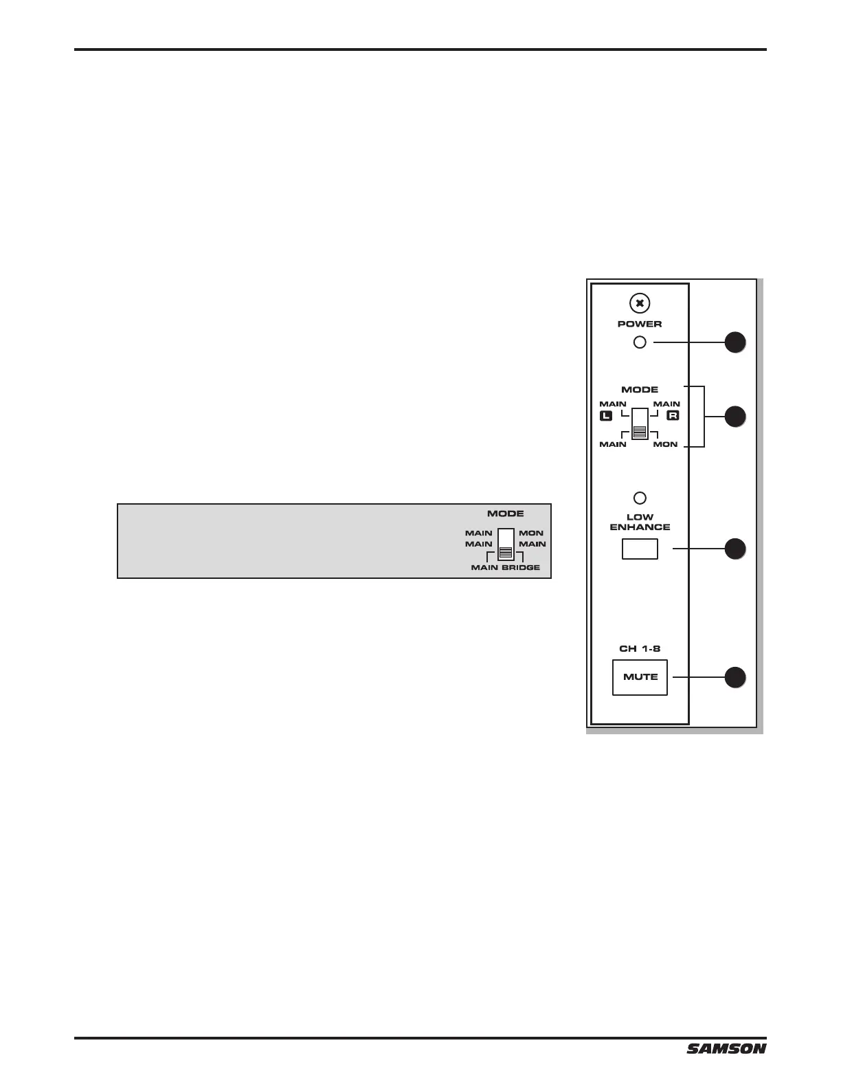 39. Power Amp MODE switch - The MODE switch is used to select one of the