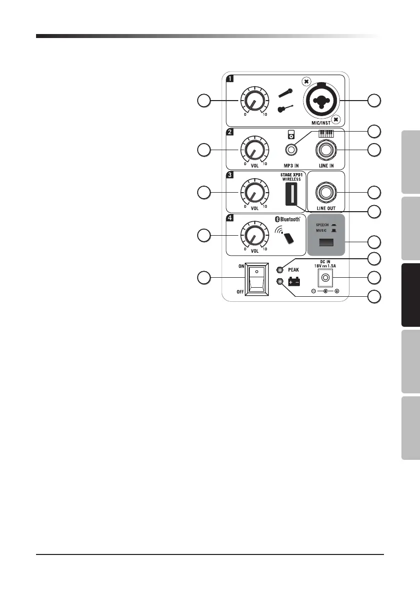 LINE OUT - 1/4" Ausgangsanschluss, um mehrere XP106 Systeme miteinander zu