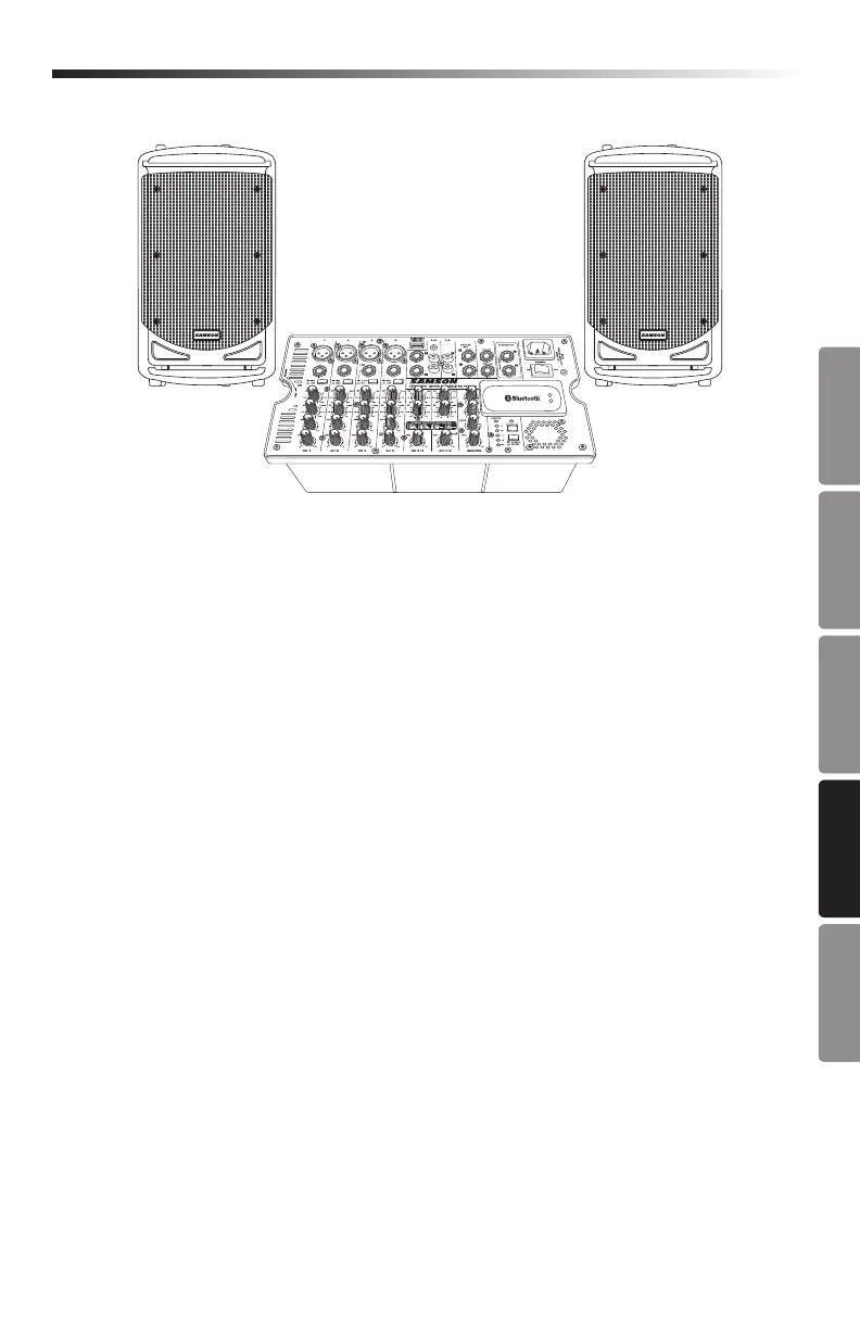 • El mezclador se almacena en uno de los recintos de altavoces; el otro recinto tiene un