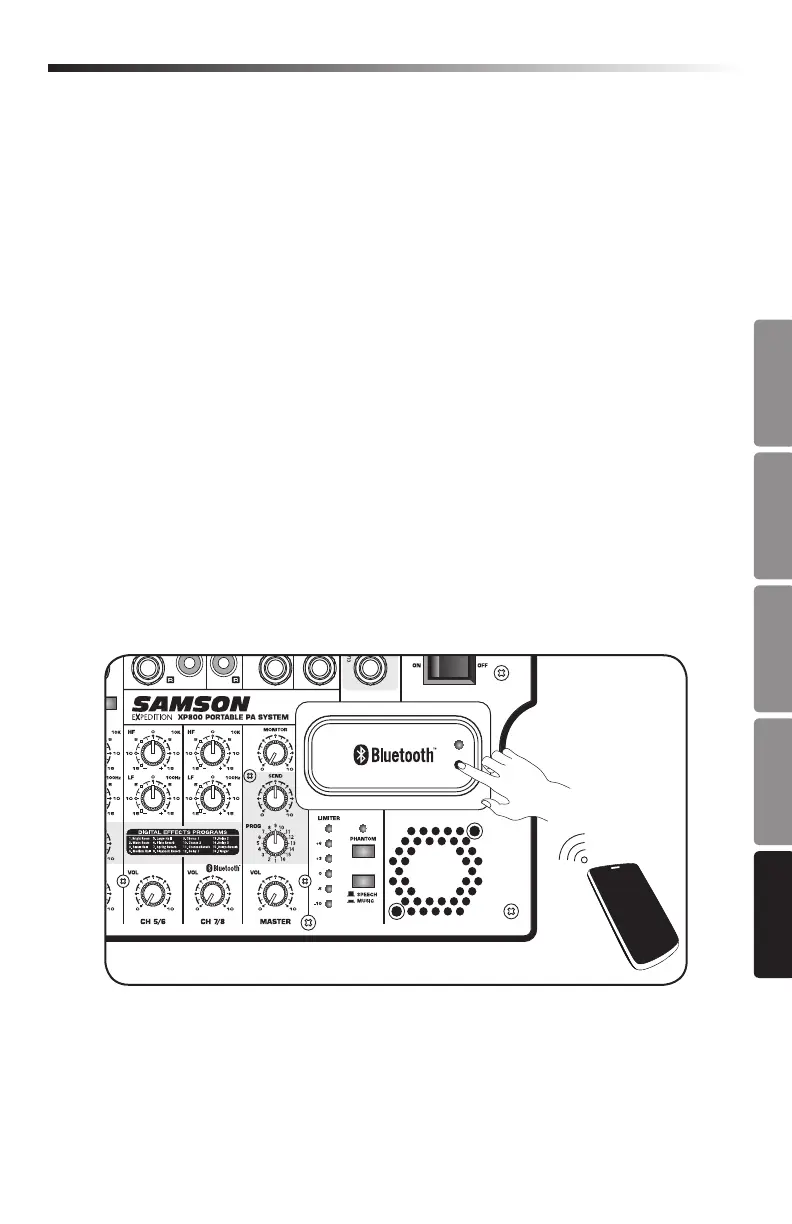 superiore del mixer del XP800 per rendere l'altoparlante rilevabile via Bluetooth. La spia