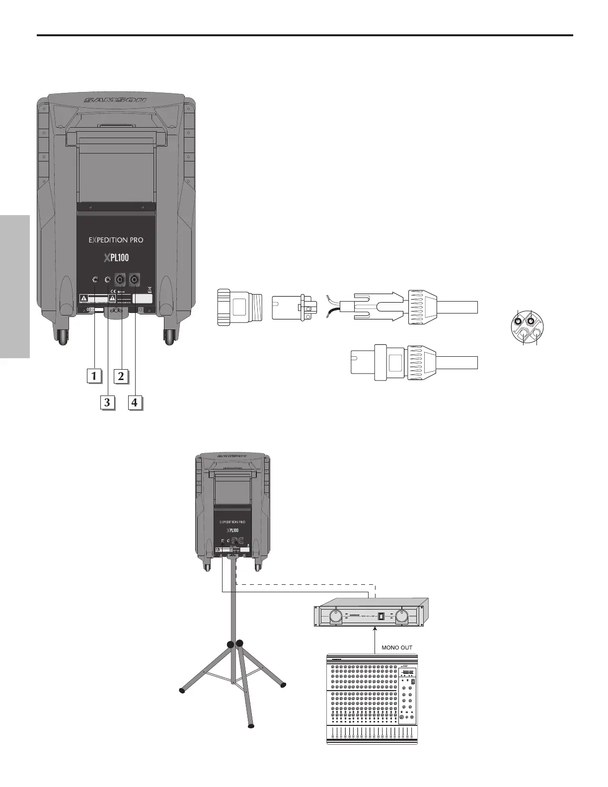 l'entrée Speakon™ (ligne pointillée) de l'XPL100.