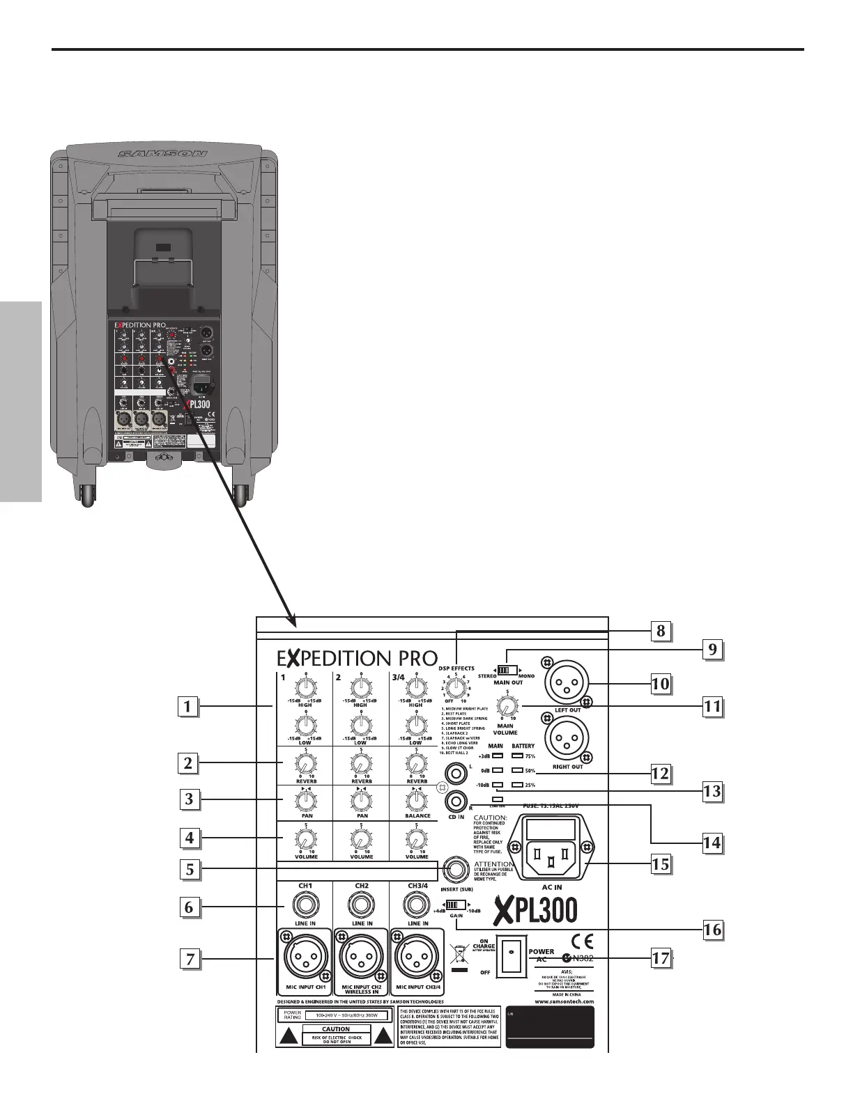 des 10 Presets doit être sélectionné à l’aide du réglage DSP Effects (voir n° 10 à la page